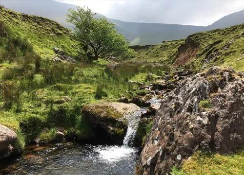 The geology of the area is dominated by Old Red Sandstone from the Devonian period 300 million ago. There are 5 lakes in the Galtees which are important aquifers and were created by the action of ice and is some of the finest examples of a glacial lake site with erosional and depositional features. The higher peaks, known as nanataks, protruded above the ice and were subjected to intense freeze-thaw action, a good exampleis O Loughlan’s Castle which overlooks Lake Muskry.
